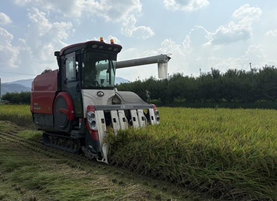 [경북도민방송=이종환 기자]경산시가 올해 첫 벼 수확에 들어갔다.