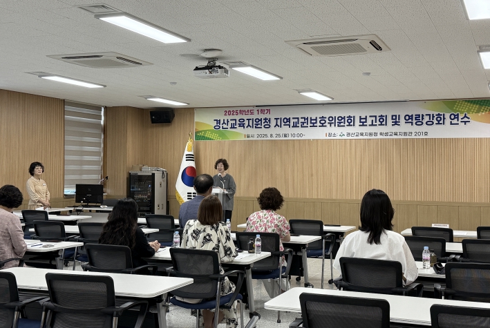 [경북도민방송=이종환 기자]경상북도경산교육지원청은 2025년 8월 25일 경산교육지원청 학생교육지원관 201호에서 ˝2025학년도 1학기 지역교권보호위원회 소위원회 심의결과 보고회 및 역량강화 연수˝를 진행했다. 2024년 3월 28일부터 시행된 “교권의 지위 향상 및 교육활동 보호를 위한 특별법”에 따라 지역교육지원청으로 이관된 지역교권보호위원회는 변호사, 경찰, 교장, 교감, 퇴직 교원, 학부모를 심의위원으로 위촉하여 학교급(유치원, 초등학교, 중학교, 고등학교, 특수학교)을 고려한 5개의 소위원회로 구성하여 심의를 진행하고 있다. 보고회에서는 소위원회가 의결한 사항을 반기별로 보고함으로써 공정하고 내실 있는 운영을 통해 교육공동체의 신뢰도를 제고하고자 마련됐다. 또한, 경상북도교육청 교육활동보호센터에서 교권업무를 담당하는 배창근 장학사를 강사로 초청하여 교권보호위원회의 역할과 책무, 다양한 교육활동 침해 사례와 심의 의결 과정 등을 살펴보며 심의위원들의 역량 강화와 전문성 신장에 도움을 주고자 했다. 박경화 교육장은 ˝이번 보고회와 연수를 통해 교육활동 침해 사안에 대해 정확하고 능동적으로 대응하는 역량을 강화하고, 지역교권보호위원회가 공정하고 내실 있게 운영되어 교원이 안심하고 교육활동에 전념할 수 있는 여건이 조성되길 바란다.˝고 말했다.
