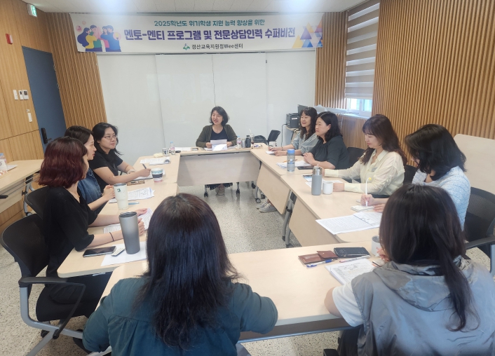 [경북도민방송=이종환 기자]경상북도경산교육지원청Wee센터는 2025년 8월 21일과 26일 양일간 Wee센터 전문상담교사, 전문상담사, 임상심리사를 대상으로 멘토-멘티 프로그램과 수퍼비전을 실시했다. 멘토-멘티 프로그램은 고경력 전문상담인력(멘토)과 저경력 전문상담인력(멘티)이 센터 운영 노하우를 공유하고 위기 학생 지원 방안을 함께 논의하며, 관내 학교에 더욱 효과적인 상담 및 프로그램을 제공할 수 있는 역량을 강화하고자 운영됐다. 함께 진행된 수퍼비전은 상담 개입 방법에 대해 자문을 받는 전문성 증진 활동으로, 가천대학교 심리학과 임영진 교수와 영남대학교 교육학과 이윤주 교수가 수퍼바이저로 참여했다. 센터의 모든 상담인력이 수퍼비전에 참여해 학업중단 위기, 자해‧자살 등 고위기 사례 개입 역량을 강화했다. 경상북도경산교육지원청(교육장 박경화)은 ˝멘토-멘티 프로그램과 수퍼비전을 통해 Wee센터 구성원 간 협력 체계와 사례 개입 역량이 크게 향상됐다. 이를 바탕으로 한 효과적인 센터 운영이 관내 위기 학생들의 마음 건강 증진에 큰 도움이 되기를 기대한다.”고 말했다.