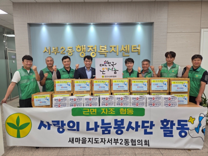 [경북도민방송=이종환 기자]새마을지도자서부2동협의회(회장 채효식)는 2일 ‘사랑의 나눔봉사단 활동`을 통해 관내 취약계층 15가구에 라면 1박스와 떡 1박스를 전달하며 따뜻한 나눔을 실천했다. 채효식 새마을지도자협의회장은 ˝작은 정성이지만 어려운 이웃들에게 조금이나마 힘이 됐으면 한다”며, ˝앞으로도 지속적인 나눔과 봉사를 통해 따뜻한 지역사회를 만들어가는 데 최선을 다하겠다”고 말했다.김순근 서부2동장은 ˝오늘의 나눔이 단순한 물품 전달이 아니라 응원하는 마음까지 전달됐으면 한다”며, ˝이웃을 위한 따뜻한 나눔 활동에 앞장서 주신 새마을지도자분들께 감사드리며, 동에서도 소외되는 이웃이 없도록 세심히 살피겠다”고 말했다.한편, 새마을지도자서부2동협의회는 환경 정화 활동, 행복한 보금자리 만들기 사업 추진, 급식 봉사 등 다양한 봉사활동을 꾸준히 전개하며 지역사회 발전과 주민 화합에 기여하고 있다.