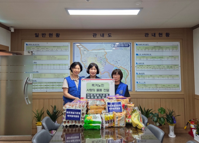 [경북도민방송=이종환 기자]바르게살기운동 북부동위원회는 9일 관내 독거어르신들을 위한 ‘사랑의 물품 꾸러미 나눔 행사’를 진행했다.이번 행사에서는 홀로 생활하며 도움이 필요한 어르신 5가구를 대상으로 라면, 계란, 과일 등 생필품을 정성껏 준비하여 가정에 직접 전달했다. 위원들은 단순히 물품을 전달하는 데 그치지 않고, 안부를 살피며 따뜻한 말을 건네는 등 어르신들과의 정서적 교감에도 힘썼다.바르게살기운동 북부동 위원회는 그동안 다양한 봉사활동과 나눔 행사를 통해 지역 사회의 든든한 버팀목이 되어 왔으며, 앞으로도 취약계층을 위한 지속적인 나눔 활동을 전개하여 더불어 사는 따뜻한 공동체 조성에 힘쓸 계획이다.이재경 바르게살기운동 북부동위원장은 “회원님들의 정성과 마음이 담긴 물품들이 어르신들께 작은 힘이 되길 바란다”며 “앞으로도 꾸준한 봉사활동으로 이웃사랑을 실천하고, 따뜻한 나눔 문화가 확산될 수 있도록 노력하겠다”고 전했다.김현주 북부동장은 “늘 지역 사회를 위해 앞장서 주시는 바르게살기운동 북부동 위원회에 감사드린다”며 “행정복지센터 또한 복지 사각지대 해소와 소외된 이웃 돌봄에 최선을 다하겠다”고 말했다.