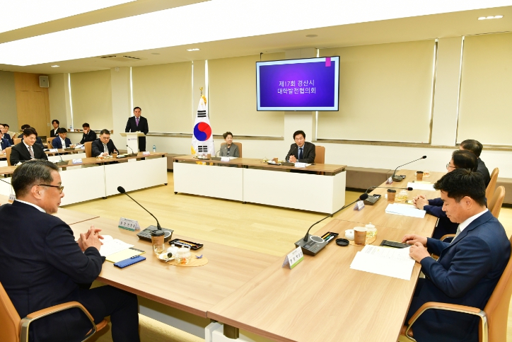 [경북도민방송=이종환 기자]경산시는 11일 대경대학교 컨퍼런스룸에서 지역 10개 대학 총장 및 시 관계자들이 참석한 가운데 `제17회 경산시 대학발전협의회`를 개최했다.이번 협의회는 “대학과 지역! 함께 누리는 프리미엄 라이프!”를 주제로, 올해 2월 ‘현대 프리미엄 아웃렛’ 유치 이후 대학과 지자체가 협력하여 지역경제와 청년 정주 여건을 제고할 수 있는 방안에 대한 논의의 장으로 마련됐다. 조현일 경산시장은 인사말을 통해 “대학과 지역이 힘을 모은다면 학령인구 감소, 청년 수도권 유출, 지방 소멸이라는 위기도 새로운 기회로 바꿀 수 있다”고 전하며, 대학발전협의회가 지역과 대학이 함께 만들어가는 더 나은 미래를 설계하는 뜻깊은 자리가 되길 바란다“고 밝혔다. 회의를 통해 경산시에서는 △현대 프리미엄 아웃렛 추진 방향 및 지역발전 연계 전략 설명을 시작으로 △경상북도 광역형 비자 시범 사업 추진, △임당 유적 전시관 개관, △2025 경산 갓바위 소원성취 축제, △경산 시티투어 운영 등 주요 시정에 대한 대학의 협조와 홍보를 당부하는 한편, 각 대학에서는 현대 프리미엄 아웃렛과 연계한 △청년 일자리 창출, △지역 문화·관광 활성화, △교육·체험 프로그램 운영 등 상생 발전 아이디어와 의견을 제시하는 등 경산시와의 협력 의지를 적극적으로 제시했다.회의를 마친 후 참석자들은 대경대학교 내 정글랩, 동물복지센터, 빵오쇼콜라, 아세바 등 주요 시설에 대한 학교 라운딩을 끝으로 본 행사를 마무리했다.한편, 지역과 대학의 상생 발전 방안 모색을 위해 2014년 발족한 경산시 대학발전협의회는 매년 개최되고 있으며, 차기 회의는 2026년도 상반기에 대구한의대학교에서 열릴 예정이다.