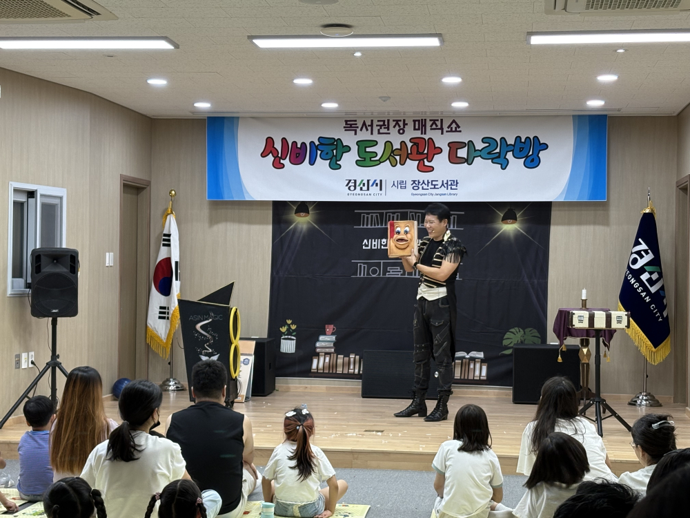 [경북도민방송=이종환기자] 경산시립장산도서관은 13일 도서관 시청각실에서 독서권장 매직쇼 ‘신기한 도서관 다락방’을 열었다.