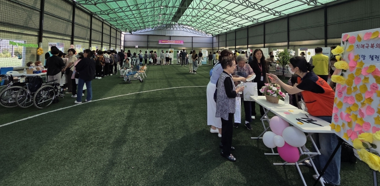 [경북도민방송=이종환 기자]경산시는 21일 ‘치매 극복의 날’을 앞두고, 16일 반석 풋살장에서 국민건강보험공단과 협력해 치매 인식 개선을 위한 홍보행사 및 복지 용구 이동전시체험관을 운영했다고 밝혔다.이번 행사는 치매 환자와 가족, 지역 주민을 대상으로 치매 예방과 조기 진단·치료의 중요성을 알리고, 치매에 대한 인식을 개선하여 치매 친화적 지역사회 환경을 조성하기 위해 마련됐다. 경산시치매안심센터 주관으로 국민건강보험공단(본사)과 10개 유관 기관이 함께해 다양한 체험 프로그램과 홍보부스를 운영했다.특히, 국민건강보험공단이 운영한 ‘찾아가는 복지용구 이동전시체험관’에서는 치매 환자 및 어르신 돌봄에 필요한 70여 종의 복지용품을 직접 체험할 수 있어 주민들로부터 큰 호응을 얻었다.이와 함께, 치매안심센터는 15일부터 19일까지 프로그램 참여자들의 작품을 전시하고 있으며, 22일에는 등록 치매 환자 및 가족을 위한 ‘단비 시네마’도 운영할 예정이다.한편, 경상북도청 동락관에서 열린 ‘제18회 치매극복의 날’ 기념행사에서 경산시치매안심센터 협력 의사인 건강한 뇌신경과 빈창훈 원장이 치매 극복 유공자로 표창을 받았다고 밝혔다.안병숙 보건소장은 “이번 행사를 통해 치매에 대한 사회적 공감대를 형성하고, 치매 환자와 가족들이 더 안전하고 편안한 환경에서 생활할 수 있는 행복한 경산시를 만들어 나가겠다”고 말했다.