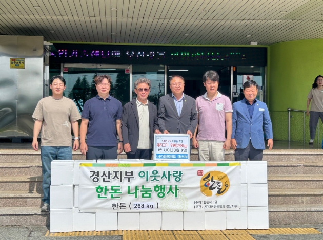 [경북도민방송=이종환 기자]대한한돈협회 경산지부(지부장 곽신욱)는 추석을 맞아 16일 경산시 드림스타트 가정 67곳에 돼지고기 4kg씩 총 67박스(약 400만 원 상당)를 지원했다.이번 나눔은 한돈 ESG 지역사회공헌 활동의 일환으로, `우리 이웃과 함께하는 따뜻한 추석`을 만들기 위해 마련된 것으로, 경산지부 회원 24명이 정성을 모아 준비했다. 경산지부는 매년 돼지고기 나눔 행사와 함께 이웃돕기 성금 기탁 등 다양한 사회공헌 활동을 이어오고 있으며, `시민과 농가가 함께 살아가는 공동체`를 만들기 위한 노력을 지속하고 있다.곽신욱 경산지부장은 ˝이번 돼지고기 나눔이 소외된 이웃들에게 작은 도움이 되길 바라며, 앞으로도 지속적인 사회공헌을 통해 지역과 상생하는 한돈협회가 되도록 노력하겠다”고 말했다.이희수 경산시 농업기술센터 소장은 ˝어려운 여건 속에서도 꾸준한 나눔 활동을 이어가고 있는 대한한돈협회 경산지부에 깊이 감사드리며, 이웃과 함께하는 따뜻한 공동체를 만드는 데 큰 힘이 되고 있다˝고 전했다.