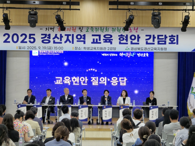 [경북도민방송=이종환 기자] 경상북도경산교육지원청은 9월 19일 15:00, 학생교육지원관 2강당에서 조지연 국회의원과 박채아 교육위원회 위원장을 초청하여 경산지역 교육현안을 논의하는 간담회를 개최했다. 이번 간담회는 학부모회, 학교운영위원회, 녹색어머니회, 학생상담자원봉사자연합회 등 학부모 중심의 교육공동체와 교육 관계자가 참석하여 교육현안에 대한 의견 및 문제점을 파악하고 경산 지역 교육의 발전 방향과 성장을 위한 공감과 소통의 자리가 됐다. 조지연 국회의원은 “경산이 교육발전특구에 지정되고, 교육 경쟁력 강화를 위한 공모 사업에 선정되는 등의 성과가 있었다.”면서 “오늘 간담회에서 나온 여러 의견을 귀담아 듣고, 경산 교육 발전에 밑거름이 되도록 세심히 챙기겠다.”고 말했다. 또한 박채아 교육위원장은 “오늘 간담회를 통해 경산 교육현안에 어떤 전략을 세워야할지 점검하는 계기가 됐고 앞으로 현안을 하나하나 풀어나가며 매듭까지 지을 수 있도록 노력하겠다.”고 포부를 밝혔다. 간담회에 참석한 학부모는 “교육 현장의 다양한 의견을 들을 수 있었고, 특히 지역 교육 현안에 대해 함께 고민할 수 있는 뜻깊은 자리였다. 앞으로도 학부모의 목소리가 교육 정책에 반영될 수 있기를 기대한다.”고 말했다. 정수권 교육장은 “이번 간담회를 통해 경산교육의 발전을 위한 다양한 의견과 해결책이 모색됐다. 앞으로도 지속적인 소통과 협력을 통해 아이신나 경산교육을 실현하도록 지원을 아끼지 않겠다.”고 약속했다.