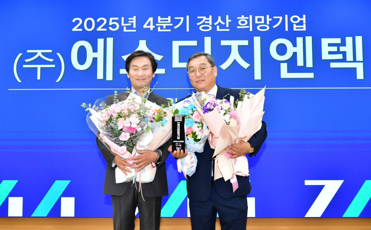 특히 자동차용 강화 플라스틱은 연료 소비와 배출가스를 줄이고, 주행 저항 감소·제동성 향상 등 차량 성능을 높이는 핵심 소재로 평가된다.기업의 성장과 더불어 사회공헌 활동도 꾸준하다. 매년 이웃돕기 성금과 장학금을 기탁하며 지역사회와 함께하는 기업의 책임을 실천하고 있다.오대국 대표는 “기업을 운영하면서 지역의 도움을 많이 받았다. 희망 기업으로 선정돼 감사한 마음이 크다”며 “앞으로 지역경제 활성화에 기여하는 기업이 되도록 더욱 노력하겠다”고 말했다.조현일 경산시장은 “㈜에스디지엔텍은 기술개발은 물론 기업의 이윤을 사회에 환원하며 경산의 희망이 되는 모범적 기업”이라며 “앞으로도 경산을 대표하는 자랑스러운 기업으로 성장하길 기대한다”고 격려했다.한편, 경산시는 2013년부터 올해까지 총 58개사를 ‘경산 희망 기업’으로 선정해왔다.