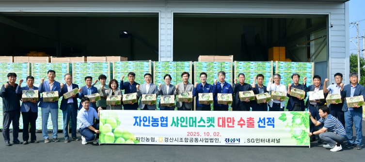 [경북도민방송=이종환 기자]경산시는 2일 자인농협 농산물유통센터에서 조현일 경산시장, 조지연 국회의원, 손병한 자인농협장, 포도 공선회원을 비롯한 관계자 30여 명이 참석한 가운데 대만 수출 선적식을 개최했다.이날 수출 선적식에는 샤인머스캣을 현지 시장 소비자들의 수요에 맞춰 400g 소포장 6,480팩과 4kg 대포장 1,120박스로 구성된 총 7톤을 올해 말까지 매주 금요일마다 수출할 계획이며, 대만 시장 내 경산 샤인머스캣의 인지도 확산과 시장 점유율 확대를 목표로 하고 있다.한편, 경산시는 정체된 내수시장을 넘어 글로벌 농산물 시장을 선도하는 도시로 도약하기 위해, 관내 업체의 신흥 유망시장 판로 개척과 수출 확대를 목표로 수출 상담회와 해외 안테나숍 운영 계획 등 수출 기회를 확대하기 위해 본격적으로 나설 계획이다.조현일 경산시장은 “미래에 대비하지 않는 농업은 존재할 수 없다”며 “관내에서 생산되는 농산물은 수출 물량 확대 및 수출국 다변화를 통해, 경산 농산물의 세계화는 물론, 농가 소득 증대에도 큰 활력을 불어넣을 것으로 기대한다”고 밝혔다.