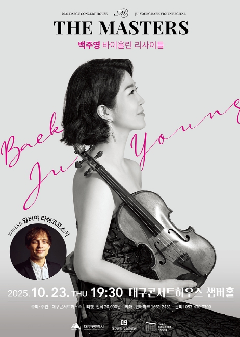 [경북도민방송=손중모 기자] 대구콘서트하우스의 독주회 시리즈 공연인 ‘The Masters’(이하 ‘더 마스터즈’)의 `백주영 바이올린 리사이틀`이 10월 23일 오후 7시 30분 대구콘서트하우스 챔버홀에서 개최된다.더 마스터즈는 대구콘서트하우스가 클래식 애호가들을 위해 매월 1회, 내로라하는 연주자들의 깊이 있는 연주를 들어볼 수 있는 시리즈 프로그램이다.이번 공연은 클래식 전용 공연장에서 국내를 대표하는 실력 있는 연주자의 수준 높은 무대를 가까이서 만나는 ‘더 마스터즈 시리즈’의 10월 공연으로, 바이올리니스트 백주영의 연주를 선보인다.최고의 작곡가이자 마에스트로인 펜데레츠키로부터 ‘안네 소피 무터를 이을 바이올린의 여제’라는 극찬을 받은 바이올리니스트 백주영은 시벨리우스 콩쿠르, 파가니니 국제 바이올린 콩쿠르, 인디애나폴리스 콩쿠르, 롱티보 국제 콩쿠르, 퀸 엘리자베스 콩쿠르에 입상함으로써 실력을 인정받았으며, 2005년 서울대 음대 역사상 최연소 교수 임용 후 세계 최초로 바흐와 이자이의 무반주 바이올린 12곡 전곡을 하루에 완주하는 등 왕성한 연주 활동을 펼치고 있다.뉴욕 카네기 홀, 링컨 센터, 워싱턴 케네디 센터, 필라델피아 킴멜 센터, 도쿄 산토리 홀 등 세계 주요 무대에서 활발히 활동 중이며, 카잘스 페스티벌, 폴란드 베토벤 페스티벌, 줄리어드 포커스 페스티벌, 잘츠부르크 여름 음악 페스티벌 등 유수한 국제 페스티벌에도 참가했으며, 세종솔로이스츠의 리더를 역임하고 현재 앙상블 오푸스의 리더로 활약 중이다. 이번 무대에 함께 오를 피아니스트 일리야 라쉬코프스키는 프랑스 롱-티보 콩쿠르 2위, 벨기에 퀸 엘리자베스 콩쿠르 4위, 이스라엘 루빈스타인 피아노 콩쿠르 3위, 일본 하마마츠 피아노 콩쿠르 1위 등 세계 유수의 콩쿠르를 석권한 후, 현재 왕성한 활동을 펼치고 있는 러시아 출신의 피아니스트이다.빈틈없는 테크닉과 풍부한 감정표현으로, 관객의 마음을 사로잡으며, 피아노 팬들에게는 물론이고, 함께 연주하는 동료 아티스트들로부터도 존경과 사랑을 함께 받고 있는 피아니스트로 유명하다. 일리야 라쉬코프스키는 현재 성신여자대학교 음악대학 초빙교수로 재직하면서, 한국을 중심으로 세계적으로 활동하고 있다.두 아티스트의 완벽한 하모니를 만나볼 이번 리사이틀의 1부는 슈만-브람스-디트리히 세 명의 작곡가들의 합작인 ‘F.A.E(Frei aber einsam 자유 그러나 고독) 소나타’ 중 브람스가 작곡한 3악장 스케르초로 시작하여, 이탈리아 바로크 시대의 대표적인 바이올리니스트이자 작곡가인 타르티니가 작곡한 신비로운 선율과 어려운 테크닉의 향연 ‘악마의 트릴’ 소나타로 이어진다.또 현대적이고 세련된 라벨의 소나타 2번 2악장은 멜랑꼴리한 블루스 악장을 삽입하여 자유스러움을 추구하여 매력이 넘치는 곡이다. 2부는 리하르트 슈트라우스가 남긴 유일한 바이올린 소나타 E♭장조, 작품번호 18번을 선보인다. 교향시와 오페라 분야에서 뛰어난 작품들을 남긴 작곡가인만큼 멜로디가 유려하며 바이올린과 피아노의 선율적 대화, 두 악기가 부딪혀 만드는 강렬한 에너지 등 낭만주의 최후의 바이올린 소나타로 평가되는 걸작으로 마무리한다.박창근 대구콘서트하우스 관장은 “세계 무대에서 활동하는 두 아티스트의 완벽한 호흡을 느낄 수 있는 이번 공연에 많은 관심 바란다”고 공연을 준비하는 소감을 전했다. 본 공연은 전석 2만 원으로 8세 이상 관람 가능하며, 대구콘서트하우스 누리집에서 예매할 수 있다.