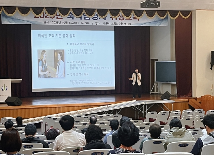 [경북도민방송=손중모 기자] 대구광역시와 대구문화예술진흥원 관광본부는 지역 숙박업 경영자 350여 명을 대상으로 외래 방문객의 대구관광 만족도 제고를 위한 ‘환대의 기술: 고객을 사로잡는 응대 전략’ 교육을 지난 10월 14일 대구교통연수원에서 성황리에 마무리했다.대구관광 실태조사(2023, 2024)에 따르면, 대구를 방문한 여행객의 ‘숙박 서비스’ 만족 비율(100% 기준)은 내국인 61.0%, 외국인 84.4%로, 식당 서비스나 쇼핑 서비스 등 다른 항목에 비해 개선이 필요한 것으로 나타났다. 이에 대구시와 문예진흥원은 대한숙박업중앙회 대구시지회와 협력해 지역 숙박업 경영자 맞춤형 응대 교육을 추진했다.이번 교육은 체크인부터 체크아웃까지 숙박 서비스 전 과정에서의 응대 매너, 외국인 관광객 대상 번역 앱(APP) 활용법, 상황별 영어 대응 요령, 한국 문화 에티켓을 설명하는 법 등 국제 수준의 서비스 역량 강화를 중점적으로 다뤘다. 특히 현장에서 즉시 적용할 수 있도록 다양한 유형의 고객 응대 사례와 위기 상황별 대응 기술을 함께 교육하여 실효성을 높였다.강성길 대구문화예술진흥원 관광본부장은 “숙박업 분야는 대구를 찾는 관광객에게 여행 만족도와 도시 이미지에 직접적인 영향을 미치는 주요 접점인 만큼, 이 분야의 서비스 품질과 종사자 환대 역량을 지속적으로 강화해 나가고, 업종별 맞춤형 서비스 교육도 단계적으로 확대해 관광 유관 종사자들의 환대 역량을 꾸준히 높여 나가겠다”고 말했다.