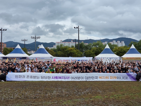 [경북도민방송=이종환 기자]경산시는 18일 영남대학교에서 도내 21개 시군 1,700여 명의 사회복지사가 참여한 가운데 `제17회 경상북도 사회복지사 체육대회`를 성황리에 개최했다.강창교 경북사회복지사협회장은“경상북도 사회복지사 체육대회는 사회복지사 간의 우애와 연대를 다지는 소중한 자리이며, 안전하게 대회를 마무리할 수 있도록 서로를 배려하고 함께하는 자세로 임해주길 바란다”고 말했다.서천덕 경산시사회복지사협회장은“늘 보이지 않는 곳에서 묵묵히 헌신하고 계신 사회복지사 여러분의 노고에 깊은 감사를 드리며, 앞으로도 사회복지사들의 처우 개선과 복지 향상에 앞장서겠다”고 말했다.윤희란 경산부시장은“경산에서 열리는 이번 체육대회를 통해 어려운 이웃을 위해 열심히 뛰고 있는 사회복지사 여러분이 그동안의 고충과 스트레스를 잠시나마 내려놓고, 재충전하는 뜻깊은 시간이 되길 바란다”고 전했다.이번 대회는 2007년 처음 시작으로 매년 경상북도의 사회복지사들이 한자리에 모여 친목을 도모하고 소통을 강화하는 자리로 올해는 축구, 긴고리 던지기, 플라잉디스크, 이색 줄다리기 등 다양한 종목으로 진행됐으며, 사회복지사들이 일상 업무에서 벗어나 서로 소통하고 유대감을 강화하는 기회와 재충전의 시간이 됐다.