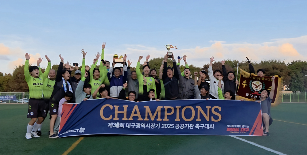 북구청 축구팀의 이번 우승은 1997년 제7회 대회 이후 무려 28년여 만의 정상 탈환으로, 조직 내 단결력과 꾸준한 노력이 빚어낸 값진 결실로 평가된다.이번 대회에는 대구광역시 내 12개 공공기관 축구팀이 참가했으며, 북구청은 우승 트로피를 포함해 최우수 감독상(김현식), 최우수 선수상(노광수), 득점왕(전재철) 등 총 4개의 상을 휩쓸며 대회를 완벽히 장악했다.특히 결승전에서 선수들은 끝까지 포기하지 않는 투지와 강한 팀워크로 접전 끝에 승리를 거머쥐며, 관중석의 응원 속에 28년 만의 우승을 자축했다.북구청 축구팀은 50여 명의 동호회원이 매주 토요일마다 꾸준히 훈련을 이어온 결과 이번 성과를 이뤄냈다.