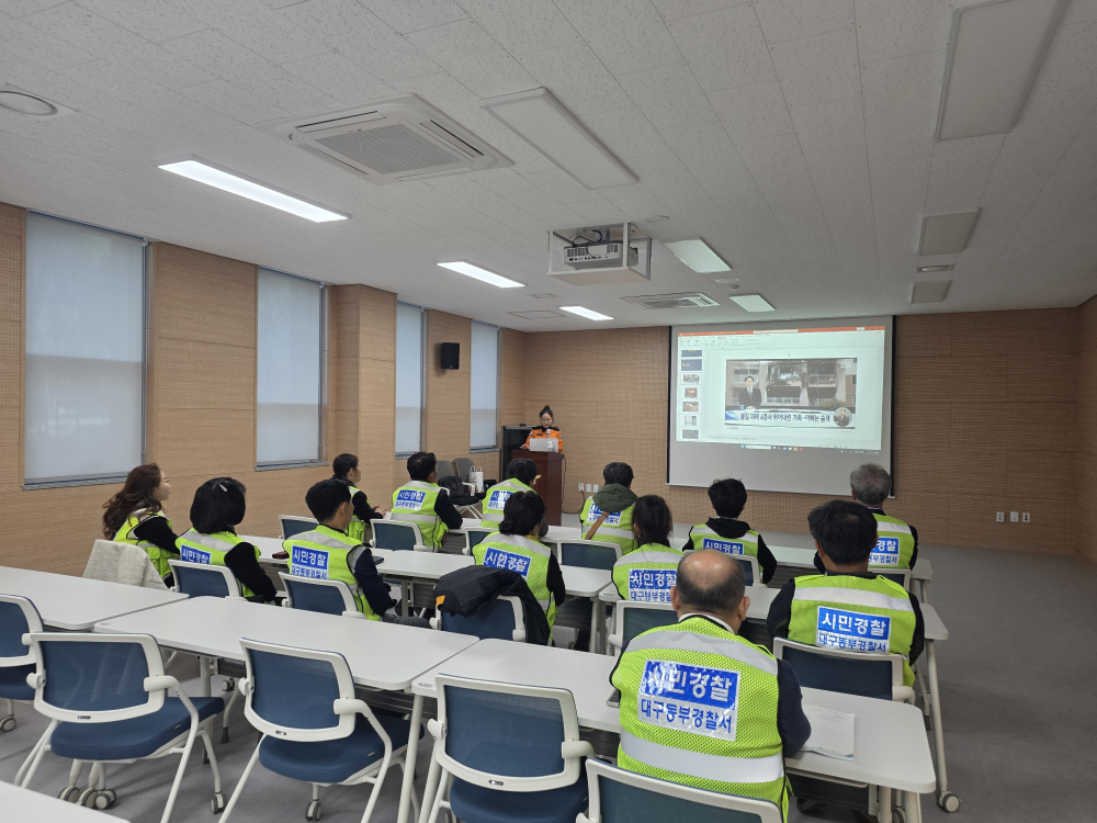[경북도민방송=손중모기자] 대구동부경찰서는 28일 오후 2시, 제11기 시민경찰학교 교육생들을 대상으로 동부소방서 및 동대구지구대 현장 견학과 스마트사격 체험 프로그램을 진행했다.이번 교육은 시민들이 경찰과 소방의 역할을 직접 체험하며 공동체 안전의 중요성을 이해하도록 돕기 위해 마련된 현장형 체험 프로그램이다.먼저 동부소방서에서는 ▲응급상황 대비 심폐소생술 실습 ▲화재 발생 시 완강기 사용법 ▲소방차 초기 진압기구 활용 등 실습 중심의 안전교육이 진행돼, 참가자들이 실제 재난 상황에 대처할 수 있는 능력을 높였다.이후 동대구지구대에서는 ▲지구대 내부 견학 ▲경찰 장비 소개 ▲스마트 사격 체험이 이어졌다. 시민들은 경찰관의 근무환경과 현장 치안활동을 직접 살펴보며, 지역 치안 유지의 중요성을 체감했다.장호식 동부경찰서장은 “시민경찰이 지역사회의 치안 동반자로 성장하기 위해 경찰과 소방의 협력체계를 직접 경험한 뜻깊은 자리였다”며 “앞으로도 시민이 함께 참여하는 다양한 현장 중심 교육을 통해 안전한 지역사회를 만들어가겠다”고 밝혔다.