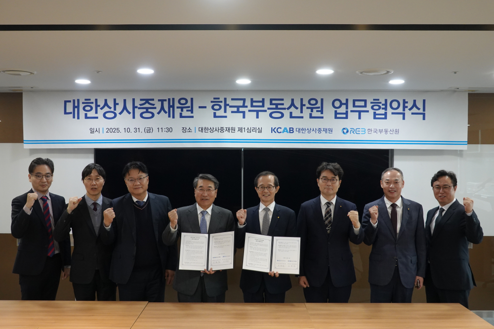 [경북도민방송=손중모기자] 한국부동산원은 지난 31일 대한상사중재원과 정비사업 관련 분쟁의 사전 예방과 효율적인 분쟁 조정을 위한 업무협약(MOU)을 체결했다고 밝혔다.이번 협약은 정비사업 현장에서 빈번히 발생하는 공사비·계약 관련 갈등을 예방하고, 분쟁 조정의 전문성과 신속성을 높이기 위한 기관 간 전략적 협력체계 구축을 목표로 한다.한국부동산원은 정비사업지원기구로서 공사비 분쟁 예방을 위한 ‘공사비 계약 사전컨설팅’, ‘공사비 검증업무’, ‘공사비분쟁조정단 파견’ 등을 수행해왔다.