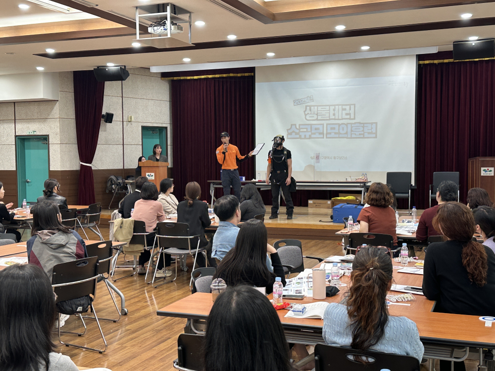 [경북도민방송=손중모기자] 대구동구보건소는 지난달 31일 세균·바이러스·독소 등 생물학적 위협에 대비한 ‘생물테러 대응 소규모 모의훈련’을 실시했다고 3일 밝혔다.이번 훈련은 생물테러 상황 발생 시 초기 대응 절차와 협업 체계를 점검하고, 직원들의 대응 역량을 강화하기 위해 마련됐다.훈련은 △생물테러 대응 영상을 통한 개념 및 대응체계 학습 △다중탐지키트 검사 실습 △환경 검체 포장 및 의뢰서 작성 △‘도전! 생물테러 골든벨’ 등 이론과 실습을 병행한 실전 중심 프로그램으로 진행됐다.한기환 대구동구보건소장은 “이번 훈련을 통해 생물테러 대응 절차를 체계적으로 점검하고 직원들의 실무 역량을 높일 수 있었다”며 “앞으로도 지속적인 교육과 훈련을 통해 안전하고 신뢰받는 지역 보건환경 조성에 최선을 다하겠다”고 말했다.