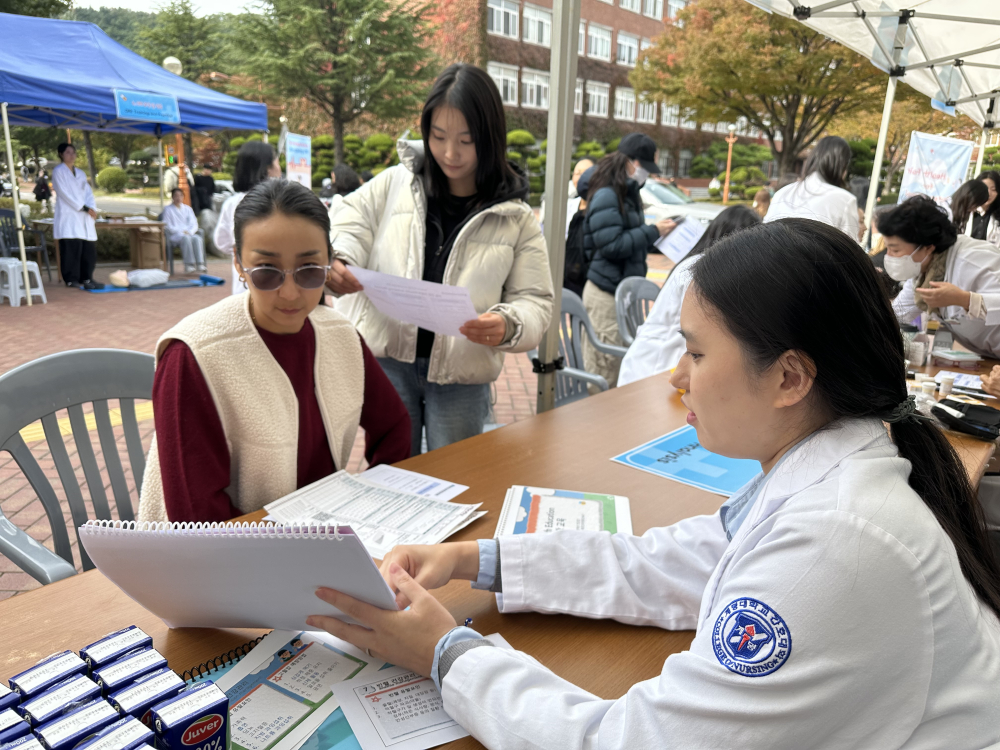 [경북도민방송=손중모기자] 계명대학교 간호대학은 지난달 30일, 계명대학교 바우어관 앞 광장에서 외국인 유학생을 위한 무료 건강검진 및 헬스페어(Health Fair) 행사를 개최했다고 6일 밝혔다.이번 행사는 의료 접근성이 낮은 외국인 유학생들에게 건강관리와 보건교육의 기회를 제공하고, 대학이 지역사회와 글로벌 공동체의 건강증진에 기여하기 위한 1차 예방 중심 사회공헌 프로그램으로 마련됐다.이날 헬스페어에는 외국인 유학생 80여 명이 참여했으며, 혈압·혈당 측정, 인바디 및 체지방 검사, 심폐소생술(CPR) 실습 등 기본 건강검진과 보건교육이 병행됐다.행사에는 간호대학 이승희 학생 외 20여 명이 자원봉사자로 참여해 직접 검진과 교육을 진행했으며, 대학의 전문성이 지역사회 복지로 확장된 실천적 교육의 장이 되었다.이번 행사는 간호대학 목회간호위원회(위원장 이은숙 교수) 주관으로, (사)계명1%사랑나누기와 한국목회간호선교협회(회장 김정남 교수)가 후원했다.한국목회간호선교협회는 현장 목회간호사를 지원해 행사 운영에 참여했으며, 이를 통해 민간·학교·지역사회가 유기적으로 협력하는 지역사회 건강 돌봄 모델이 구현됐다.이은숙 위원장은“이번 행사는 단순한 검진을 넘어 타문화권 유학생들이 따뜻한 관심 속에서 건강하게 학업을 이어갈 수 있도록 돕는 사랑의 실천이자 교육의 연장선”이라며“앞으로도 간호대학이 가진 전문성을 통해 지역사회와 함께하는 목회간호의 본질을 이어가겠다”고 말했다.한편, 계명대 간호대학 목회간호위원회는 1996년 설립된 한국 최초의 목회간호위원회로, 기독교적 사랑의 실천이라는 대학의 설립이념을 바탕으로 활동해왔다.미국 아이오와 메소디스트 목회간호센터 Marbel Kirsy 교수의 목회간호 개념을 도입해 교육과 지역 돌봄에 접목했으며, 빈곤층·소외계층·교회 내 돌봄이 필요한 이웃을 대상으로 건강 상담·검진·심방 활동 등을 꾸준히 이어오고 있다.