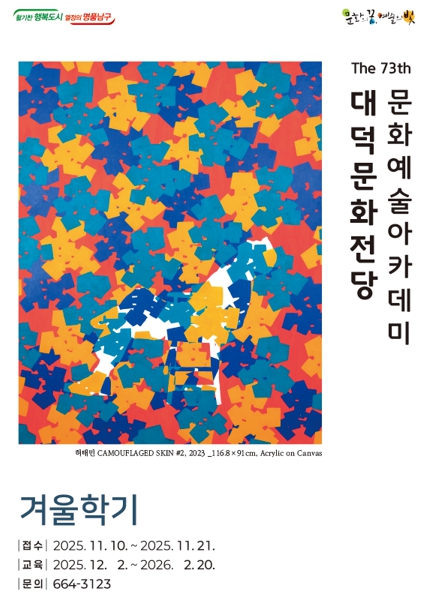 [경북도민방송=손중모기자] 대구 남구 대덕문화전당은 오는 10일부터 21일까지 ‘문화예술아카데미 겨울학기’ 수강생을 모집한다.