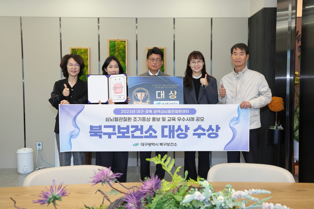 [경북도민방송=손중모기자] 대구북구보건소가 대구·경북 권역심뇌혈관질환센터 주관 ‘2025년 심뇌혈관질환 조기증상 홍보 및 교육 우수사례 공모전’에서 대상(1위)을 수상했다.