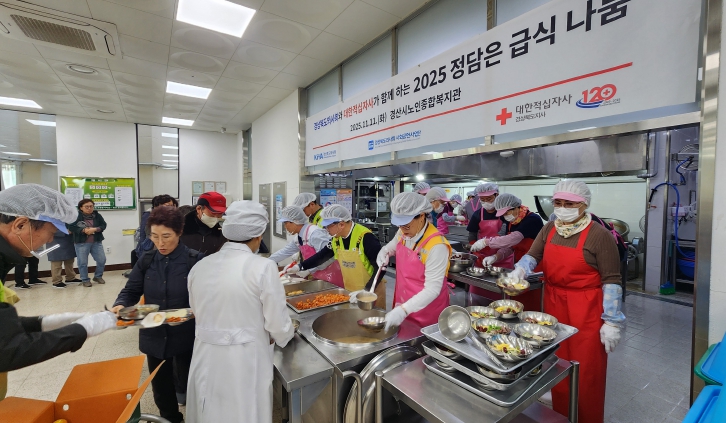 [경북도민방송=이종환 기자]경상북도의사회 및 (사)경상북도의사회 사회공헌사업단(회장 겸 대표이사 이길호)은 11일 경산시노인종합복지관에서 지역 어르신 등 취약계층을 대상으로“2025 정담은 급식 나눔”행사를 개최했다.이번 행사는 대한적십자사 경북지사가 주관하고 경상북도의사회와 사회공헌사업단이 후원한 행사로, 지역 어르신 550여 명에게 정성 담긴 점심 한 끼를 대접함으로써 따뜻한 나눔문화를 실천하고 지역사회의 온기를 더하는 데 기여했다.이날 행사에서는 경산시의사회(회장 이승현) 회원들이 혈압, 혈당 체크와 건강상담을 통해 어르신들의 건강 상태를 점검하는 한편, 겨울철 건강 대비를 위해 관절 영양제 및 목도리를 후원 물품으로 전달하여 어르신들의 따뜻한 연말을 지원했다.이길호 회장은“어르신들께 따뜻한 점심을 대접할 기회를 가져 매우 기쁘다”며, “오늘 건강상담을 통해 더욱 건강한 노년을 보내시길 바라며, 소박한 선물이지만 어르신들께서 따뜻한 겨울을 나시는 데 도움이 됐으면 좋겠다”고 말했다.안병숙 경산시보건소장은 “지역 어르신들을 위해 귀한 시간을 내어 나눔을 실천해 주신 경상북도 의사회 및 봉사자 여러분께 감사드리며, 따뜻한 점심 나눔을 계기로 추운 겨울을 앞둔 어르신들이 소외감을 느끼지 않도록 더불어 살아가는 따뜻한 사회가 되길 바란다”고 감사의 인사를 전했다.