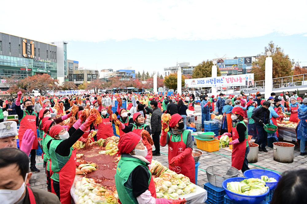[경북도민방송=손중모기자]대구 동구청은 2025 사랑플러스 김장나눔 행사을 지난 12일 아양아트센터 야외마당에서 개최했다.사랑플러스 김장나눔은 1999년 IMF 시절 처음 시작돼 올해로 27회째를 맞은 동구 대표 복지 행사다.