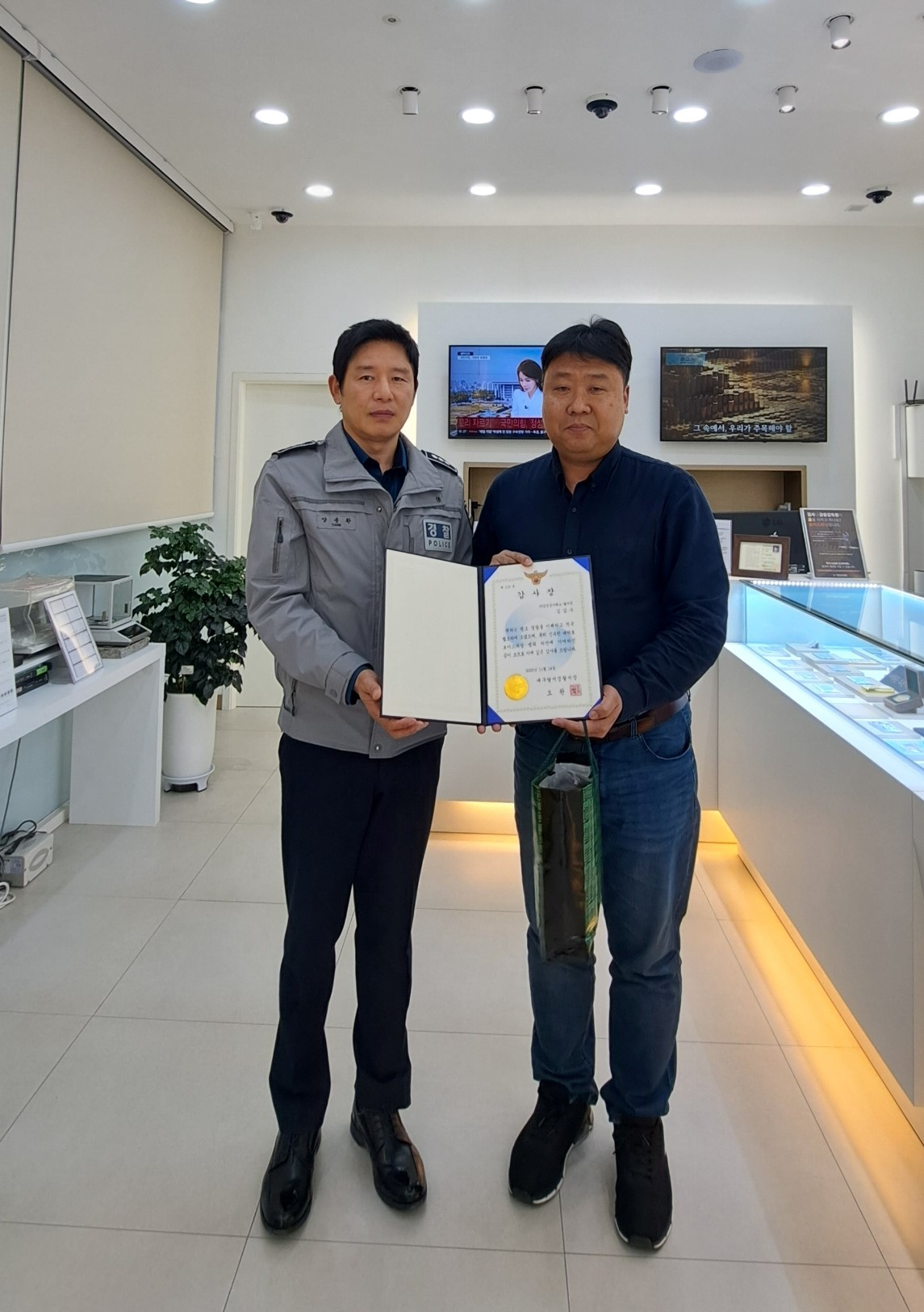[경북도민방송=손중모기자] 대구달서경찰서는 14일 삼성 금거래소 달서지점을 방문해 보이스피싱 피해를 신속한 신고로 예방한 업주에게 감사장을 전달했다고 밝혔다.달서경찰서에 따르면 지난 12일 피해자 A씨(60대·여)가 보이스피싱 조직의 요구에 속아 골드바 200g을 구매해 전달하려는 상황이었다. A씨는 약 4,600만 원을 입금한 뒤 골드바 수령을 요청하며 금거래소를 찾았다.업주는 피해자의 신분증을 확인하는 과정에서 언행이 평소와 다르고 수상하다는 점을 감지해 즉시 112에 신고했다.