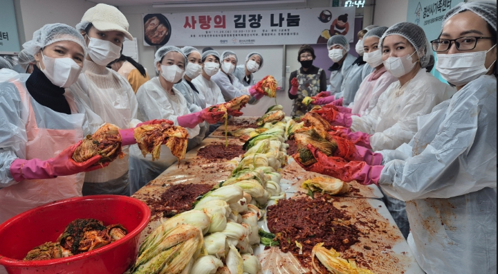 [경북도민방송=이종환 기자]경산시가족센터(센터장 정유희)는 20일 현대모비스 경북부품사업소와 사단법인 한국외식업중앙회경북지회경산시지부의 후원으로 결혼 이민자들과 비나리 가족봉사단원들이 함께 직접 담근 김치를 지역 내 홀몸 어르신과 아동 생활시설 등에 전달하는 봉사활동을 진행했다.결혼이민자들은 지역 기관 후원으로 김장 담그는 법을 배우는 한편 정성껏 담근 김치를 이웃들에게 전달하며 한겨울을 앞둔 지역사회에 따스한 온정을 전했다.봉사에 참여한 한 봉사단원은 “김장 담그는 법을 배우면서 우리 집 김장에도 도움이 됐으며, 우리가 만든 김치가 누군가의 겨울을 따뜻하게 하는 데 보탬이 되기를 바란다”고 말했다.정유희 센터장은 “봉사단원들이 마음을 모아 나눔에 동참해 주셔서 감사드리며, 앞으로도 다양한 나눔 활동을 통해 지역과 함께하는 가족센터가 되겠다”며 다양한 가족 서비스를 제공하겠다고 밝혔다.경산시가족센터 비나리가족봉사단은 나눔 봉사 외에도 환경 정화활동 등 다양한 봉사활동을 진행하고 있으며 봉사단 활동에 관심 있는 가족들은 경산시가족센터로 문의하면 된다.