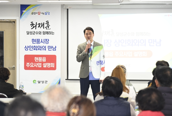 [경북도민방송=손중모 기자]달성군은 지난 18일 현풍시장 2층 상인회 교육장에서 ‘현풍읍 주요사업 설명회’를 열었다. 이날 행사에는 100여 명의 상인회 회원과 주민이 참석했으며, 최재훈 군수가 직접 나서 현풍읍 일원에서 진행되는 주요 사업의 추진 배경과 향후 구상을 설명했다. 아울러 상인들과 함께 추진 중인 사업들을 시장 상권과 연계해 방문객을 늘리고 상권 활력을 높일 방안을 논의했다. 설명회에서 집중적으로 다뤄진 사업은 ▲현풍시장 아케이드 설치 사업 ▲현풍천 경관 개선 사업 ▲현풍천 보행환경 개선 사업 ▲친환경 목조전망대 및 하동근린공원 (재)조성 사업이다. 가장 큰 관심을 모은 것은 현풍천 일대 개선 사업으로, 군은 현풍천을 수변 공간으로 재정비하고 지역의 랜드마크가 될 보행교를 조성해 도심과 현풍시장을 자연스럽게 연결하겠다는 구상을 제시했다. 발표된 자료에 따르면, 현풍3교~현풍교 550m 구간에는 수변 무대와 잔디마당, 쉼터, 낙하분수 등이 조성된다. 이어지는 현풍교~상리교 550m 구간에서는 옹벽 개선과 산책로 포장이 진행되며, 사업 구간 내 모든 교량에 대한 하부 정비 사업도 포함된다. 보행 환경 개선도 본격화된다. 현풍3교와 성하교 사이에는 폭 3m 보행교가 설치된다. 현풍교통문화파크와 현풍도깨비시장을 잇는 구조물로, 현풍을 대표하는 랜드마크 교량으로 조성될 전망이다. 군은 지난달 기본구상에 착수했으며, 2027년 준공을 목표로 하고 있다. 최 군수는 “현풍백년도깨비시장은 100년 전통의 대표시장으로, 군이 중점적으로 추진 중인 여러 사업들과도 유기적으로 연계될 수 있는 여건을 갖추고 있다”며 “시장 주변의 생활 기반이 정비되고, 경관·관광 인프라가 확충된다면 유입객 증가와 상권 활성화에도 실질적인 효과가 나타날 것”이라고 밝혔다. 이어 “앞으로도 현장의 목소리를 가까이 듣고, 실질적인 변화로 이어지는 행정을 펼칠 수 있도록 상인회와의 소통을 지속해 나가겠다”고 덧붙였다.