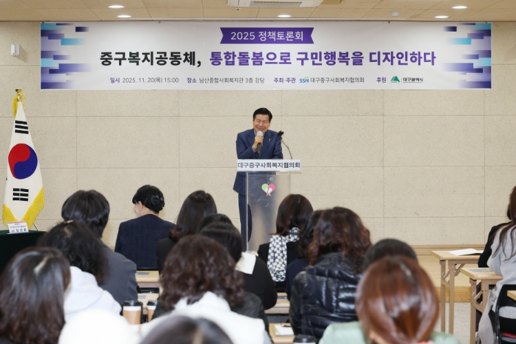 [경북도민방송=손중모 기자]대구 중구는 지난 20일 남산종합사회복지관에서 2026년 3월부터 시행되는 통합돌봄사업의 원활한 추진을 위해 ‘2025년 중구 사회복지 정책토론회’를 개최했다. 이번 토론회는 중구사회복지협의회(회장 윤보경)가 주최했으며, 사회복지시설장과 종사자 등 80여 명이 참여한 가운데 “중구복지공동체, 통합돌봄으로 구민행복을 디자인하다”라는 주제로 진행됐다. 행사는 ▲중구청 생활보장과 정지윤 통합돌봄TF팀장의 ‘돌봄이 스며든 일상, 따뜻한 통합돌봄의 시작’ ▲중구지역자활센터 김성훈 실장의 ‘통합돌봄사업 시행에 따른 지역자활센터의 역할’ ▲중구시니어클럽 박현숙 실장의 ‘일-돌봄 연계프로젝트: 일이 이어주는 따뜻한 돌봄’ ▲삼덕재가노인돌봄센터 노재준 과장의 ‘돌봄의 전환시대, 재가노인돌봄센터의 역할을 묻다’ 등 네 가지 발제로 진행됐다. 이어진 질의응답과 자유토론에서는 중구사회복지협의회 권병현 부회장을 좌장으로 현장 중심의 돌봄 사각지대 해소, 기관 간 협력체계 강화, 지속 가능한 통합돌봄 모델 구축 등을 중심으로 다양한 의견이 논의됐다. 류규하 중구청장은 “중구사회복지협의회는 민·관 협력의 모범으로 다양한 복지사업을 지속해서 추진해 왔다”며 “고령화와 복지 수요가 빠르게 증가하는 만큼, 현장의 목소리를 정책에 적극 반영해 중구형 통합돌봄 체계를 성공적으로 구축해 나가겠다”고 말했다. 한편, 중구사회복지협의체는 향후에도 지역 맞춤 복지정책을 발굴하고 민·관 협력 기반을 강화해 지속 가능한 지역복지 체계를 구축해 나갈 계획이다.