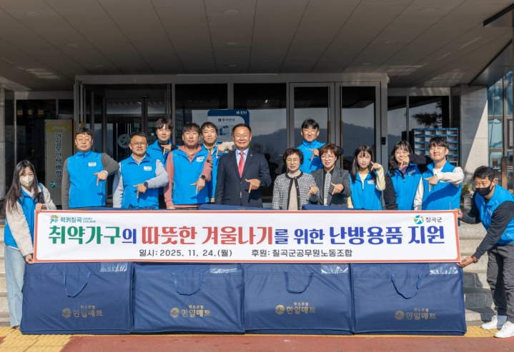 [경북도민방송=한동균 기자] 칠곡군은 지난 24일 겨울철 한파에 대비해 취약계층을 대상으로 난방용품을 지원하는 ‘따뜻한 겨울나기’ 사업을 실시했다.이번 지원은 군과 칠곡군공무원노동조합(위원장 장성원)의 후원으로 매년 진행되고 있으며, 올해는 22가구의 취약계층에 전기매트를 지원하여, 난방에 어려움을 겪는 주민들의 따뜻한 겨울나기를 위해 마련됐다.장성원 칠곡군공무원노동조합장은 “작은 정성이지만 어려운 이웃에게 따뜻함이 전해지길 바란다.”며 “앞으로도 지역사회 나눔 활동에 적극 동참하겠다.”고 밝혔다.김재욱 칠곡군수는 “매년 취약계층을 위해 나눔을 실천하는 공무원노동조합에 감사드린다”며, “군에서도 한파로 인한 소외계층이 발생하지 않도록 촘촘한 복지체계를 유지하겠다”고 말했다.