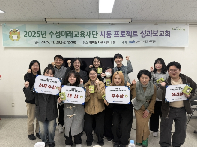 [경북도민방송=손중모 기자]대구 수성미래교육재단은 시동 프로젝트 ‘뚜비 캐릭터 편’에 참여한 5개 대학생 팀에 총 1천만 원의 장학금을 지급했다고 4일 밝혔다.‘시동 프로젝트’는 수성미래교육재단이 추진하는 지역교육 경쟁력 강화 사업의 일환으로, 지역 대학생들의 창의적인 아이디어를 발굴하고 실행을 지원하기 위해 마련된 프로그램이다. 다양한 전공의 대학생들이 팀을 구성해 주어진 주제에 대해 새로운 결과물을 제작하도록 한 이번 프로젝트는 2025년 ‘수성구 캐릭터 뚜비’를 주제로 진행됐다.이번 프로젝트는 올해 5월 서류 및 발표심사를 통해 선정된 5개 팀이 약 7개월간 활동한 뒤 성과보고회에서 결과를 발표했다. 특히 수성구 대표 캐릭터 ‘뚜비’를 활용한 보드게임 제작 등 기존 활용 범위를 확장한 참신한 시도가 높은 평가를 받았다.