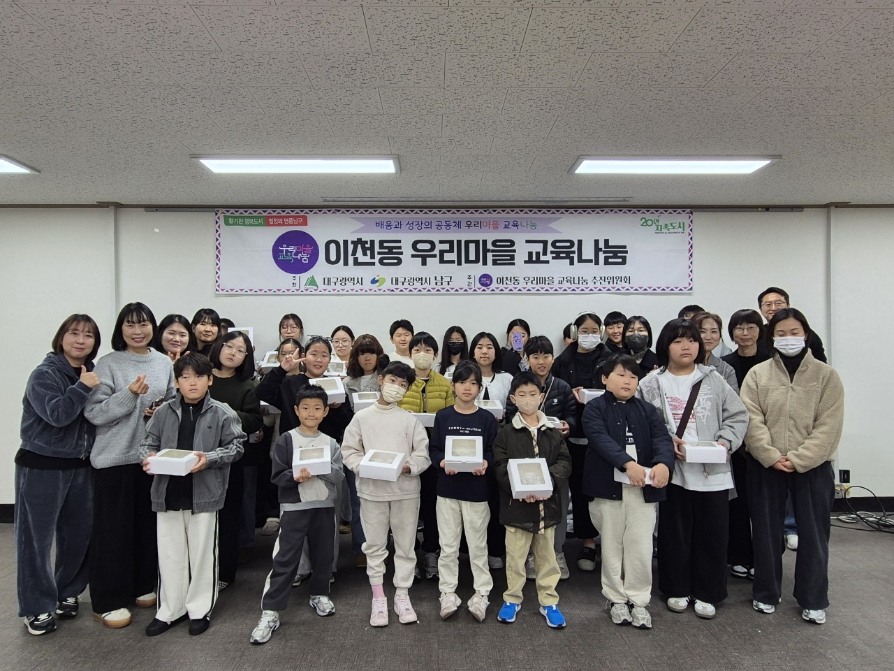 [경북도민방송=손중모기자] 대구 남구 이천동 우리마을 교육나눔 추진위원회는 지난 30일 이천동행정복지센터에서 청소년과 주민 30여 명이 참여한 ‘달콤한 맛, 나눔의 맛’ 프로그램을 진행했다.