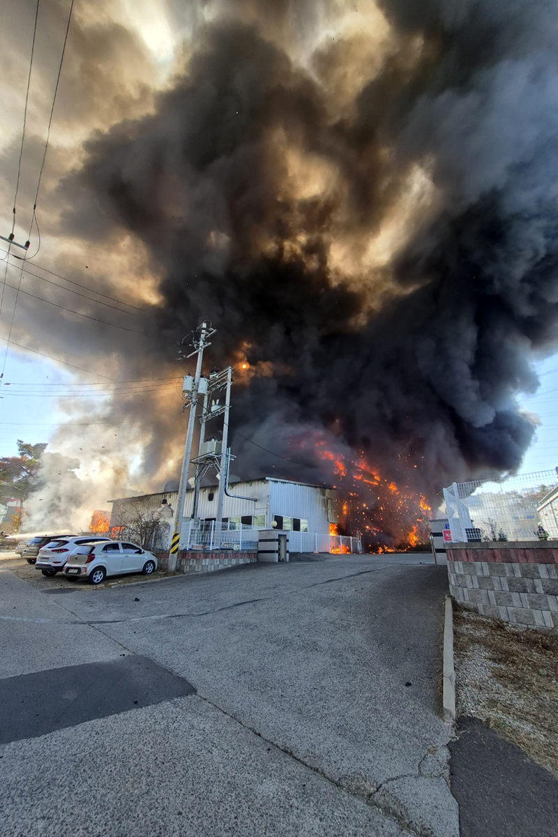 화재 당시 공장 주변에는 시커먼 연기가 치솟아 인근 주민 불안이 이어졌다.