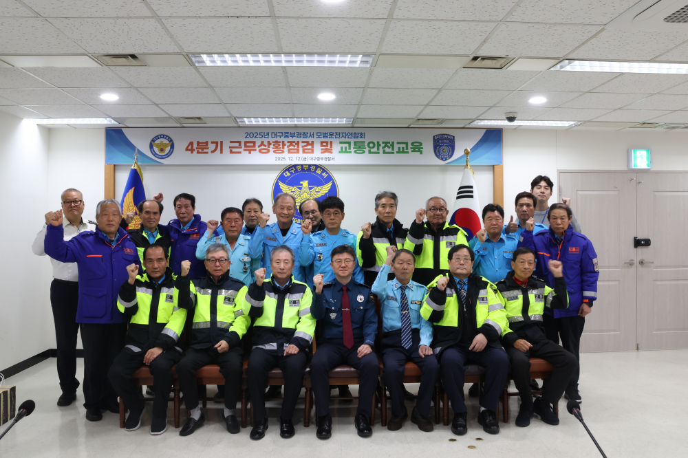 [경북도민방송=손중모기자] 대구중부경찰서는 12일 오전 경찰서 7층 대회의실에서 모범운전자 20명이 참석한 가운데 근무상황 점검과 교통안전 교육을 실시했다.이번 교육은 지역 교통안전 활동에 기여한 우수 모범운전자 1명에게 감사장을 전달하고, 최근 개정된 도로교통법 주요 내용을 공유하는 자리로 마련됐다.교육에서는 보행자 보호의무 위반 기준 강화와 우회전 신호등 설치·운영 등 달라진 교통법규를 중심으로 설명이 이뤄졌으며, 모범운전자들의 현장 안전 활동 대응 능력 향상에 중점을 두고 진행됐다.황정현 대구중부경찰서장은 “모범운전자 회원들은 오랜 경험과 자발적인 참여를 바탕으로 중구 지역의 교통안전 문화를 지켜온 든든한 동반자”라며 “앞으로도 긴밀한 소통과 협업을 통해 모두가 안전한 중구를 만들어 가는 데 함께 노력하자”고 말했다.