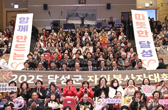 [경북도민방송=손중모 기자] 달성군자원봉사센터는 지난 15일 달성군청 문화복지동 대강당에서 ‘2025 달성군자원봉사자대회’를 개최했다.이번 대회는 자원봉사자의 날(12월 5일)을 기념해 한 해 동안 달성군 곳곳에서 나눔과 봉사를 실천해 온 자원봉사자들의 노고를 격려하고, 자원봉사 참여 문화를 확산하기 위해 마련됐다.이날 행사에는 추경호 국회의원과 최재훈 달성군수, 김은영 달성군의회 의장을 비롯해 자원봉사자와 가족, 복지시설 관계자 등 600여 명이 참석해 자원봉사의 의미를 되새겼다.행사는 기념식과 축하 공연, 퍼포먼스 등으로 구성됐다. 1부 기념식에서는 ‘함께라서 더 빛난 한 해’를 주제로 재능봉사자들의 3중주 앙상블 공연과 활동 영상 상영, 개회 선언과 국민의례가 차례로 진행됐다.