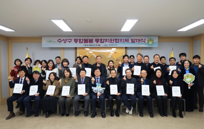 [경북도민방송=손중모 기자]대구 수성구는 지난 15일 ‘통합돌봄 통합지원협의체 발대식’을 개최하고, 지역 중심의 통합돌봄 체계 구축을 위한 본격적인 출발을 알렸다. 이번 발대식에는 보건·복지·의료 등 다양한 분야의 관계 기관 전문가 20여 명이 참석해 통합돌봄 추진 방향을 공유하고 협력 의지를 다졌다.통합돌봄 통합지원협의체는 돌봄이 필요한 어르신, 장애인 등 지역 주민이 살던 곳에서 건강하고 안정적인 생활을 지속할 수 있도록 분야별 서비스를 연계·조정하는 민관협력 기구이다. 협의체는 앞으로 ▲지역계획 수립 및 평가에 관한 사항 ▲통합지원 시책 추진에 관한 사항 ▲통합지원 관련 기관과의 연계·협력에 관한 사항 등 통합돌봄에 대한 심의·자문 역할을 수행하게 된다.이날 발대식은 1부 통합지원협의체 위원 위촉장 전달 및 기념 촬영, 2부 통합돌봄 사업 설명과 사업의 원활한 추진을 위한 논의 순으로 진행됐으며, 참석자들은 지역 맞춤형 통합돌봄 실현을 위한 공동의 책임과 역할을 확인했다.김대권 수성구청장은 “이번 통합지원협의체 출범은 기관별로 분절돼 있던 돌봄 서비스를 하나로 연결하는 중요한 전환점”이라며 “앞으로도 민관이 긴밀히 협력해 지역 주민 누구도 돌봄에서 소외되지 않는 행복수성을 만들어 나가겠다”고 밝혔다.
