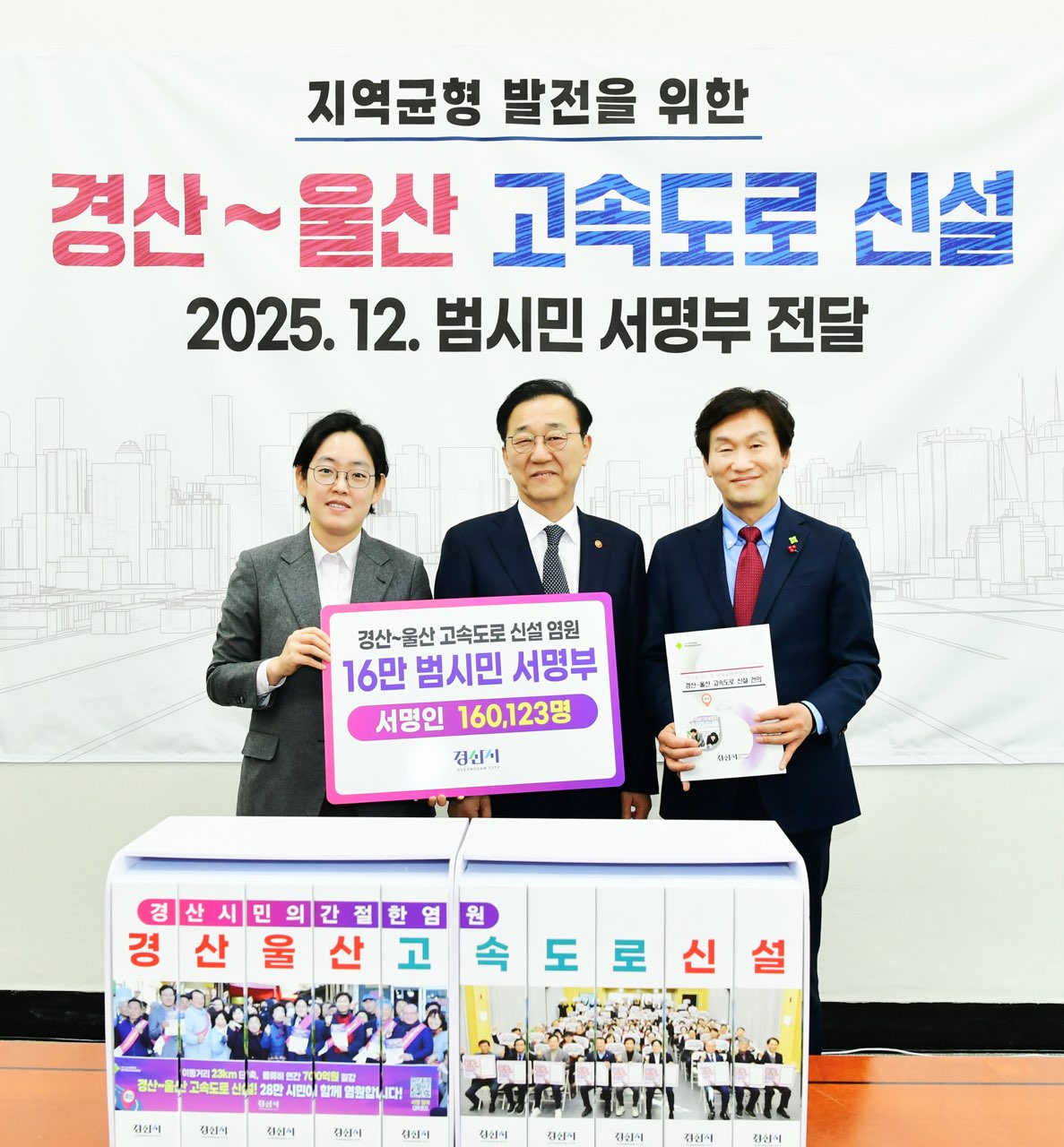 또한 범시민 서명운동과 공동 건의 절차를 통해 정책 검토에 필요한 행정적·사회적 준비를 마친 상태로, 향후 국토교통부의 검토 과정에서도 신속히 대응할 수 있는 기반을 마련했다.조지연 국회의원은 “경산~울산 간 고속도로 신설은 단순한 교통망 확충을 넘어 영남권 물류 혁신의 핵심 인프라이자 미래 산업 지도를 바꾸는 전략적 대안”이라며 “단기간에 16만 명의 서명을 달성한 것은 시민들의 간절한 염원을 보여주는 명확한 증거인 만큼, 제3차 고속도로 건설계획에 반드시 반영될 수 있도록 적극 검토해 달라”고 강조했다.조현일 경산시장은 “경산~울산 고속도로는 지역 산업과 일자리, 도시의 지속 가능성을 좌우하는 지방 생존의 문제”라며 “16만 시민의 서명은 지금이 바로 정책적 판단이 이뤄져야 할 시점임을 분명히 보여주고 있다”고 말했다. 이어 “시민의 염원이 국토교통부의 정책 검토 과정에 충분히 반영될 수 있도록 지역 국회의원과 관계기관과의 협의를 계속해 나가겠다”고 밝혔다.한편, 경산~울산 고속도로 신설과 관련해 국회 차원의 정책 논의도 이어지고 있다.