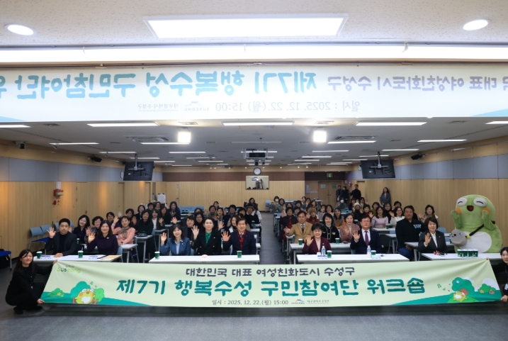 [경북도민방송=손중모 기자]대구 수성구는 지난 22일 수성구청 대강당에서 ‘2025 행복수성 구민참여단 워크숍’을 개최했다.이번 워크숍은 여성 친화 정책에 대한 구민의 이해를 높이고, 행복수성 구민참여단의 2025년 활동 성과를 공유하는 한편 향후 정책 발굴 역량을 강화하기 위해 마련됐다.행사는 동산초·동도초 학생들로 구성된 범어1동 우리마을 교육나눔 치어리딩 ‘수성트윙클’ 팀의 식전 공연을 시작으로, 개회, 활동 보고, 유공자 표창, 인공지능(AI) 역량 강화 특강 순으로 진행됐다.이날 활동 보고에서는 최숙희 행복수성 구민참여단장이 2025년 주요 활동 성과를 발표했다.▲4개 분과(친화도시팀·양성평등팀·건강도시팀·안전도시팀) 운영을 통한 특화사업 발굴 ▲행정과 구민을 잇는 소통 창구 역할 수행 ▲‘뚜비가 지키는 안심길’ 확대 조성 등 지역 안전 증진 활동 ▲현장 중심의 주민 참여 성과 등이 공유됐다.구민참여단은 이러한 활동을 통해 여성친화도시 조성을 위한 핵심 주체로서의 역할을 지속적으로 수행해 온 점을 강조했다.이어 진행된 역량 강화 특강에서는 인공지능(AI)을 주제로, 인공지능(AI) 기술이 행정과 지역사회에 미치는 영향과 주민 참여형 정책 발굴 및 문제 해결에 인공지능(AI)을 활용하는 방안에 대한 강의가 진행돼 참여단원들의 높은 관심을 끌었다.최숙희 행복수성 구민참여단장은 “2025년 한 해 동안 단원들과 함께 현장에서 발로 뛰며 주민의 경험을 정책으로 연결해 온 시간이 매우 뜻깊었다”며 “앞으로도 현장 중심의 참여 활동을 통해 안전하고 행복한 수성구를 만드는 데 참여단의 역할을 다하겠다”고 말했다.김대권 수성구청장은 “행복수성 구민참여단원들의 헌신적인 참여와 열정이 행정에 큰 힘이 되고 있다”며 “구민참여단의 제안과 현장의 목소리가 구정에 충실히 반영될 수 있도록 뒷받침하고, 앞으로도 행정의 든든한 동반자로 함께하길 바란다”고 밝혔다.