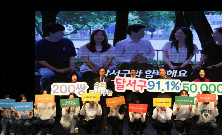 [경북도민방송=손중모 기자] 대구 달서구는 12월 22일 ‘구민의 날’을 맞아 달서아트센터 청룡홀에서 제18회 달서구민의 날 기념 ‘축하 한마당’ 행사를 성황리에 개최했다. 이날 행사에는 주민 500여 명이 참석해 달서구의 발전을 함께 축하하고 구민으로서의 자긍심을 나누는 뜻깊은 시간을 가졌다. 이번 축하 한마당은 자랑스러운 구민상 시상을 시작으로 구민의 날 기념 영상 상영, 기념 퍼포먼스, 축하공연 순으로 진행되며 다채로운 볼거리와 감동을 선사했다. 달서구는 이날 경제사회·봉사나눔·문화예술 부문에서 각 1명씩 자랑스러운 구민상 수상자를 선정해 시상했다. ▲ 경제사회 부문에는 강영대 한국외식업중앙회 달서구지부장, ▲ 봉사나눔 부문에는 배호송 화이트클럽 봉사단장, ▲ 문화예술 부문에는 이미경 ㈜한국파릇하우스 상임이사가 각각 수상의 영예를 안았다. 이태훈 달서구청장은 “달서구민의 날을 맞아 구정 발전을 위해 헌신해 주신 모든 구민 여러분께 깊은 감사와 존경의 말씀을 드린다”며, “앞으로도 ‘대구 서부권 시대를 이끌어갈 달서’를 목표로 구민과 함께 더욱 힘차게 나아가겠다”고 말했다.