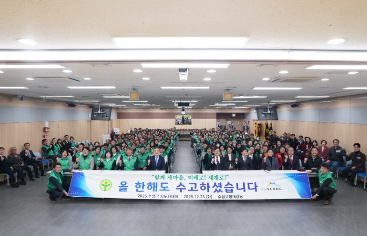 [경북도민방송=손중모 기자]대구 수성구새마을회(회장 윤종현)는 지난 23일 수성구청 대강당에서 새마을지도자와 회원, 내빈 등이 참석한 가운데 ‘2025 수성구 새마을지도자 대회’를 개최했다.이날 대회는 국민의례와 내빈 소개를 시작으로, 수성구 전역에서 한 해 동안 추진된 새마을운동 활동 성과를 담은 영상 시청에 이어 지역사회 발전과 새마을운동 활성화에 기여한 우수 새마을지도자들에 대한 표창 수여식으로 진행됐다.행사는 참석자 전원이 함께 새마을 노래를 제창하며 마무리됐으며, 참가자들은 새마을운동의 의미를 다시 한번 되새기고 지속적인 실천 의지를 다졌다.윤종현 수성구 새마을회장은 대회사를 통해 “수성구 새마을지도자 여러분의 헌신이 지역사회를 더욱 따뜻하고 살기 좋은 곳으로 만들고 있다”며 “앞으로도 새마을정신을 바탕으로 지역 발전의 든든한 주체가 되어 주시길 바란다”고 말했다.수성구청 관계자는 “새마을지도자들은 행정의 손길이 미치기 어려운 곳까지 살피며 지역 공동체를 지탱하는 중요한 역할을 하고 있다”며 “수성구는 앞으로도 새마을운동이 지속적으로 확산될 수 있도록 협력하겠다”고 밝혔다.