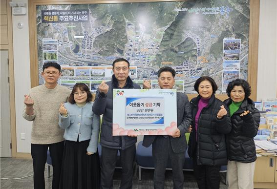 [경북도민방송=손중모기자] 대구 동구 혁신LH천년나무6단지 입주자대표회는 24일 어려운 이웃을 돕기 위해 마련한 아나바다 행사 수익금 88만8천 원을 혁신동 행정복지센터에 전달했다.
