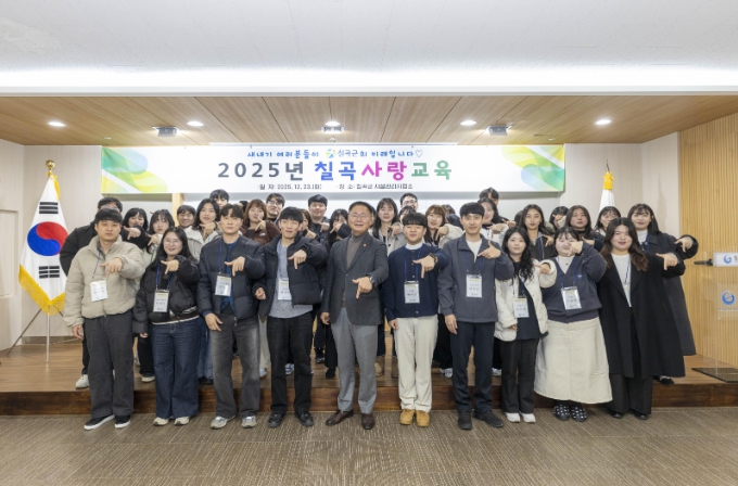 [경북도민방송=한동균 기자]칠곡군은 23일 신규발령 직원 34명을 대상으로 진행한 칠곡사랑교육에서 공직자 직무교육 및 관내 주요시설 견학을 통해 칠곡군과 직원들을 알아감으로써 새내기 직원들의 조직문화의 적응력 및 업무효율성을 높였다. 이번 칠곡사랑교육은 공직자 직무교육으로 AI교육과 친절 및 민원응대 교육을 통해 공직생활에 도움을 주고자 힘썼다. 또한, 칠곡군의 칠곡호국평화기념관을 비롯하여, 국립칠곡숲체원, 농업기술센터 등 관내 주요 시설물을 견학하여 지역에 적응력을 높이는 유익한 시간을 보냈다.김재욱 칠곡군수는 “오늘 교육을 통해 칠곡이라는 지역을 다시 한번 이해하고, 앞으로의 공직 생활을 그려보는 시간이 되길 바란다.”라고 전했다.