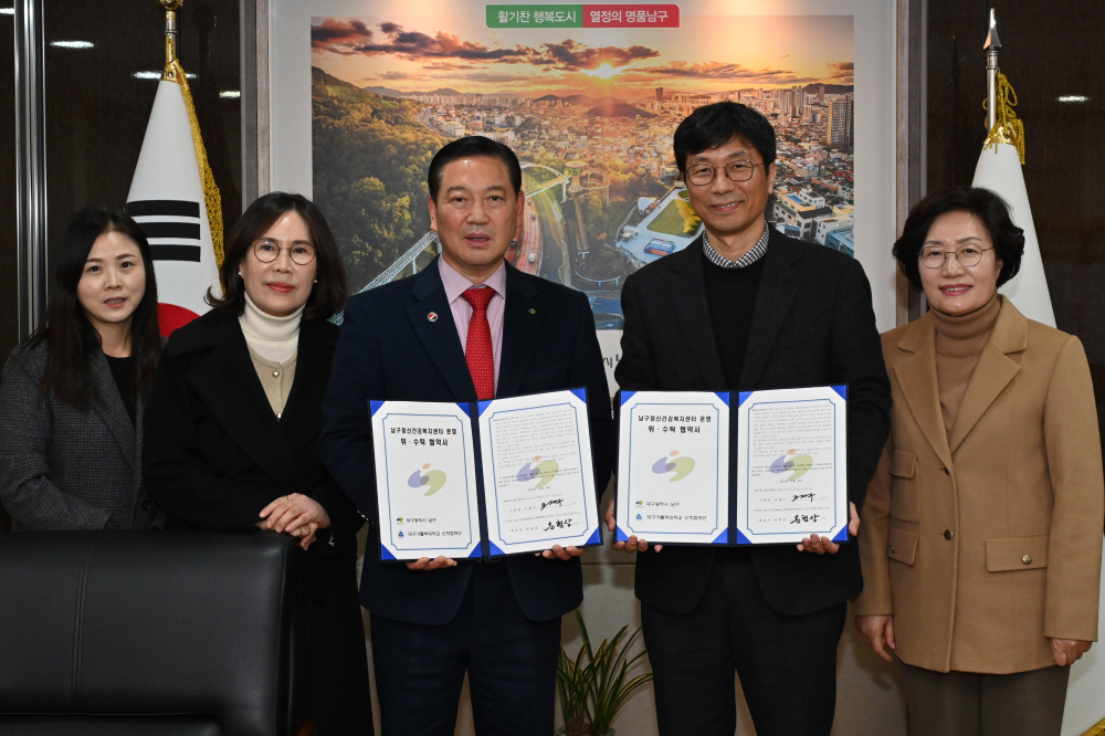 [경북도민방송=손중모기자] 대구 남구는 지난 24일 대구가톨릭대학교 산학협력단과 남구정신건강복지센터 운영에 관한 위·수탁 협약을 체결했다고 밝혔다.남구정신건강복지센터는 기존 위탁 기간이 2025년 12월 31일로 만료됨에 따라 수탁기관 모집 절차를 진행했다.