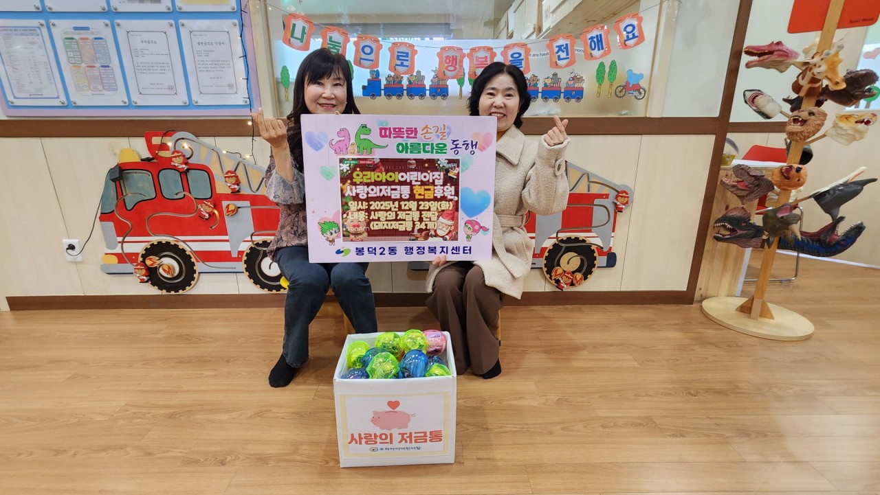 전달된 성금은 지역 내 어려운 이웃을 돕는 데 사용될 예정이다.김혜숙 봉덕2동장은 “어린이들의 따뜻한 마음이 지역사회에 큰 울림을 준다”며 “사랑의 나눔을 실천해 준 어린이집 원장님과 원생들에게 감사드린다”고 말했다.