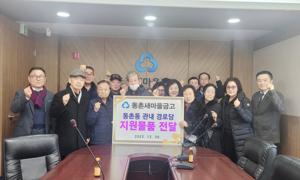 [경북도민방송=손중모기자] 대구 동구 지역 금융기관이 어르신 복지 증진을 위한 따뜻한 나눔을 실천했다.동촌새마을금고는 지난 30일 새마을금고 2층 회의실에서 동촌동 관내 경로당 8개소를 대상으로 140만 원 상당의 생필품 전달식을 가졌다고 밝혔다.이번 지원은 겨울철을 맞아 경로당 이용 어르신들의 생활 편의를 돕고, 경로당 운영에 실질적인 도움을 주기 위해 마련됐다. 전달된 생필품은 각 경로당에 고루 배분돼 어르신들의 일상생활에 활용될 예정이다.강부준 이사장은 “작은 정성이지만 어르신들의 생활에 조금이나마 보탬이 되고, 경로당 운영에도 실질적인 도움이 되길 바라는 마음으로 준비했다”며 “앞으로도 새마을금고는 지역 어르신들을 위한 나눔과 지원 활동을 꾸준히 이어가겠다”고 말했다.동촌동 김두한 동장은 “지역 경로당을 위해 지속적으로 관심과 후원을 이어오고 있는 동촌새마을금고에 깊이 감사드린다”며 “앞으로도 어르신들이 보다 쾌적한 환경에서 경로당을 이용하실 수 있도록 세심히 살피겠다”고 밝혔다.동촌새마을금고는 지역 금융기관으로서 사회적 책임을 실천하며, 취약계층과 어르신을 위한 다양한 나눔 활동을 이어가고 있다.