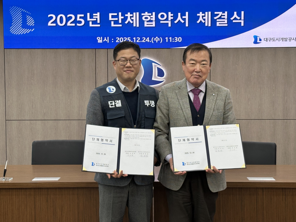 공공부문에서 대화와 협력을 통해 갈등을 예방하고 안정적인 노사관계를 구축한 모범 사례로 평가받고 있다.정명섭 대구도시개발공사 사장은 “노동조합이 공기업의 사회적 책임을 함께 고민하며 성숙한 자세로 교섭에 임해준 덕분에 좋은 결과를 만들 수 있었다”며 “이번 무분규 협약은 노사가 서로 존중하고 대화로 문제를 풀어간, 양측이 함께 만들어낸 소중한 성과”라고 말했다.이어 “앞으로도 노사가 긴밀히 협력해 시민의 기대에 부응하고, 공공노사문화의 모범이 될 수 있도록 최선을 다하겠다”고 덧붙였다.대구도시개발공사는 이번 단체협약을 계기로 노사 협력 기반을 더욱 공고히 하고, 안정적인 조직 운영과 공공서비스 품질 향상을 통해 시민에게 신뢰받는 지방공기업으로서의 역할을 강화해 나간다는 방침이다.