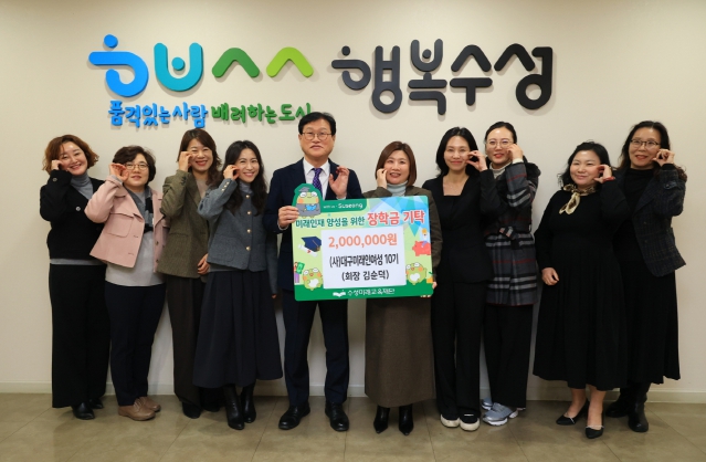 [경북도민방송=손중모 기자](사)대구미래인여성 10기(회장 김순덕)는 지난 30일 미래인재 육성과 지역 교육 발전을 위해 장학금 200만 원을 수성미래교육재단(이사장 김대권)에 전달했다.김순덕 회장은 “이번 성금은 바자회를 통해 모은 수익으로 마련된 것”이라며 “지역 여성 리더 양성과 지역사회 공헌을 목표로 하는 단체로서 앞으로도 교육·봉사·나눔 활동을 통해 공동체 가치 실현에 기여하겠다”고 밝혔다.김대권 이사장은 “지역의 미래를 이끌어갈 인재들을 위해 따뜻한 마음을 전해주셔서 감사드린다”며 “보내주신 정성은 지역 우수 인재 양성과 교육 발전을 위해 소중히 사용하겠다”고 말했다.한편, 김순덕 회장은 수성구 초등학교운영위원장 협의회 직전회장을 역임한 바 있으며, 지역사회 나눔 문화 확산에 기여해 왔다.