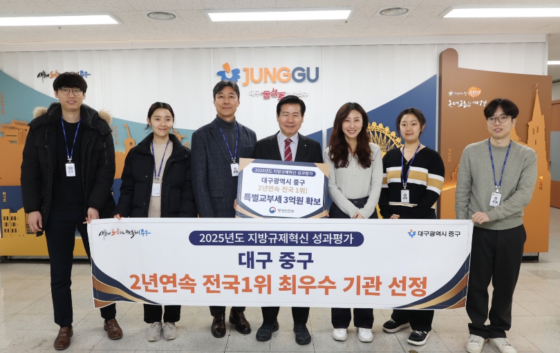 [경북도민방송=손중모 기자]대구 중구는 행정안전부가 주관한 ‘2025년 지방규제혁신 성과평가’에서 2년 연속 최우수 기관으로 선정되며 규제혁신 선도 도시로서의 위상을 다시 한번 입증했다. ‘지방규제혁신 추진 성과평가’는 행정안전부가 지방정부의 자발적인 규제 혁신을 유도하기 위해 매년 실시하고 있으며, 전국 243개 지방자치단체를 대상으로 ▲법령에 따른 규제 발굴 ▲조례·규칙상 규제 해소 ▲그림자·행태 규제 개선 실적 등을 종합적으로 평가한다. 이번 평가에서 중구는 구 단위 전국 1위를 기록하며 최우수 기관으로 선정됐으며, 이에 따라 특별교부세 3억 원을 확보하는 성과도 함께 거뒀다. 중구는 조례 개정을 통해 노천카페 등 편의시설 설치에 대한 점용허가 근거를 마련함으로써 관광특구 활성화를 위한 기반을 구축한 점에서 높은 평가를 받았다. 또한 출산 관련 지방세 감면을 별도로 신청해야 했던 기존 절차를 개선해, 주민 불편을 크게 해소한 점이 자치법규 규제 해소 분야의 우수 사례로 인정받았다. 이와 함께 ▲규제개선토론회 개최 ▲행정규제혁신 조례 및 시행규칙 제·개정 ▲중앙부처 협의 과제 발굴(가족관계사무 위임범위 확대) ▲민생규제 개선 및 그림자 규제 정비 등 다양한 분야에서 실질적인 규제 개선 성과를 거두며 전국 최우수 기관으로 선정됐다. 중구청장은 “2년 연속 최우수 성과는 구민의 불편을 줄이기 위해 현장에서 적극적으로 문제를 해결해 온 공직자들의 노력이 반영된 결과”라며 “앞으로도 주민 생활에 실질적인 도움이 되는 규제개혁을 추진해 나가겠다”고 말했다.