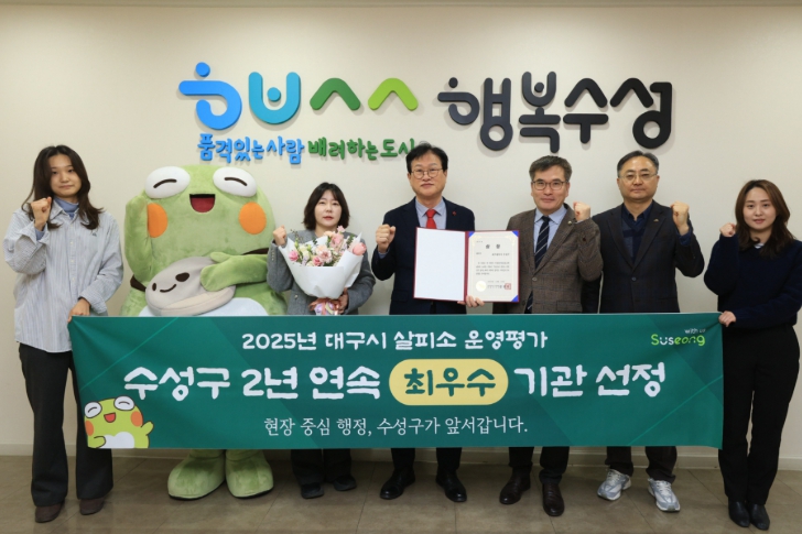 [경북도민방송=손중모 기자]대구 수성구는 ‘대구시 살피소 운영 실적 평가’에서 2년 연속 최우수 기관으로 선정됐다고 밝혔다. 이번 수상으로 수성구는 현장 중심의 행정 역량과 생활 밀착형 행정 추진 성과를 다시 한번 인정받았다.살피소(시정견문정보보고제)는 공무원이 현장을 직접 점검해 주민 생활 불편 사항을 선제적으로 발굴·개선하는 제도다. 대구광역시 감사위원회는 9개 구·군을 대상으로 ▲행정 사항 이행 실적 ▲제보 사항 처리 실적 ▲담당 부서 사기 진작 및 제도 활성화 노력 등을 종합 평가해 수성구를 최우수 기관으로 선정했다.수성구는 단순 제보 처리에 그치지 않고, 부서 간 유기적인 협업을 통해 접수부터 조치, 사후관리까지 전 과정을 신속하게 운영함으로써 행정 대응력과 문제해결의 실효성을 높이고, 구민 체감 만족도를 향상시켰다.또한 수성구는 동(洞) 유관 단체 회원과 주민, 동장, 환경순찰반으로 구성된 합동순찰반을 운영하며 재난·안전·생활 불편 등 주민 밀접 분야에 대한 상시 점검과 즉각 대응 체계를 구축한 점도 높은 평가로 이어졌다.김대권 수성구청장은 “앞으로도 주민들이 피부로 느끼는 불편함을 최소화하고, 쾌적하고 안전한 주거 환경 조성을 위해 살피소 운영 전반을 지속적으로 점검하고 개선하겠다”고 말했다.