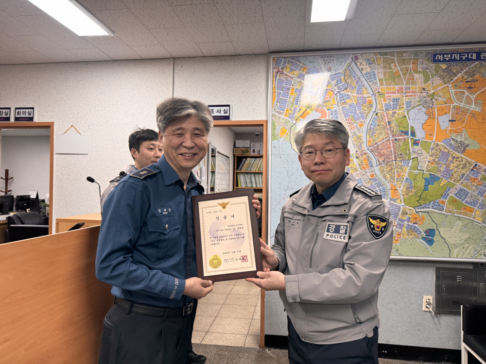 [경북도민방송=이종환 기자] 경산경찰서 서부지구대 순찰2팀장 정대상 경감이 경찰청이 주관하는 ‘2025 우수 순찰팀장’에 선정돼 인증서와 표창을 수여받았다.‘우수 순찰팀장’은 지역 경찰의 전문성을 강화하고 순찰팀장 보임 자격 기준을 높이기 위해 도입된 제도로, 경찰청이 팀장 개인의 직무 역량과 팀 운영 성과, 동료 평가 등을 종합적으로 심사해 대내외적으로 성과가 검증된 소수 인원만을 선발하고 있다.정 경감은 평소 적극적인 현장 조치를 통해 112 신고 처리의 완결성을 높이고, 주민 체감 안전도와 만족도 향상에 기여해 왔다.