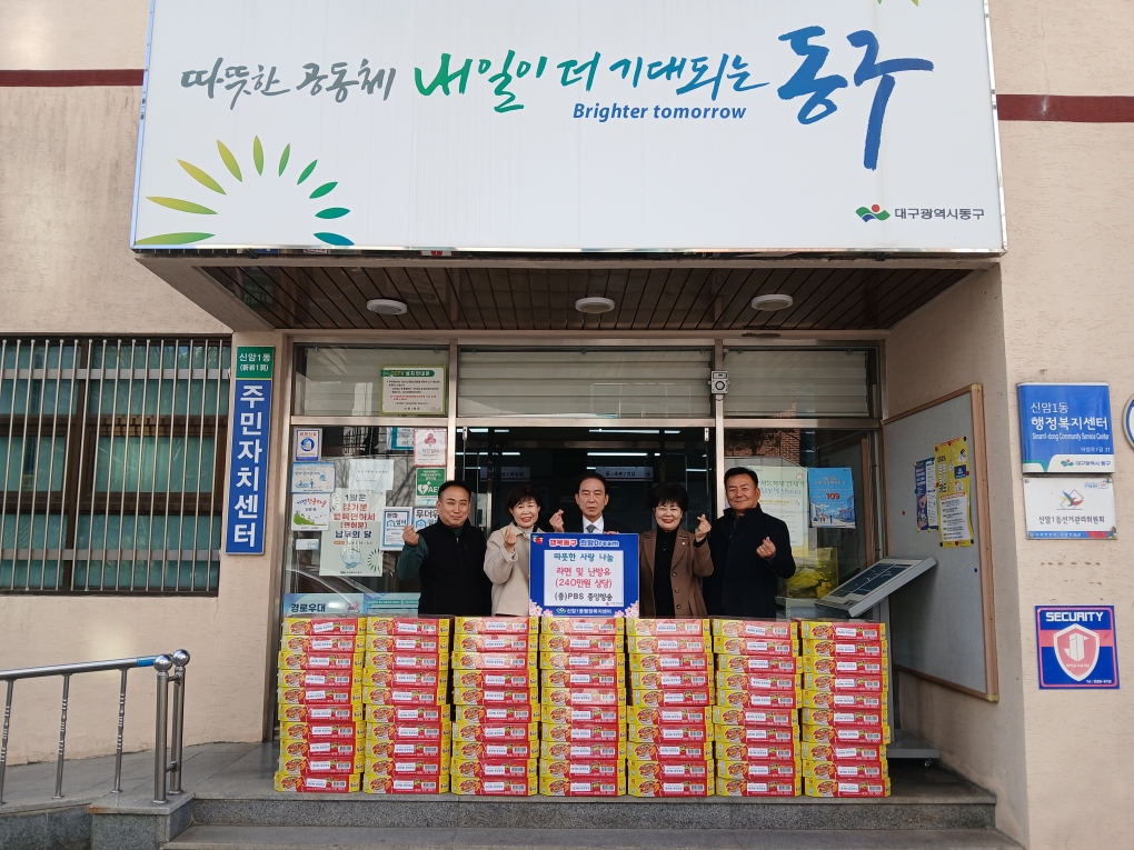 이번 기부는 난방비와 식비 부담이 커지는 겨울철을 맞아 지역 내 어려운 이웃들에게 실질적인 도움을 주기 위해 마련됐다.금승한 PBS중앙방송 대표는 “난방비와 식비 부담이 큰 겨울철인 만큼 난방유와 라면을 기부하게 됐다”며 “지역사회의 어려운 이웃들이 따뜻한 겨울을 보내는 데 조금이나마 도움이 되길 바란다”고 말했다.김영옥 신암1동장은 “어려운 시기에 나눔을 실천해 주신 PBS중앙방송에 깊이 감사드린다”며 “기부 물품은 도움이 필요한 신암1동 저소득 취약계층에게 정성껏 전달하겠다”고 밝혔다.